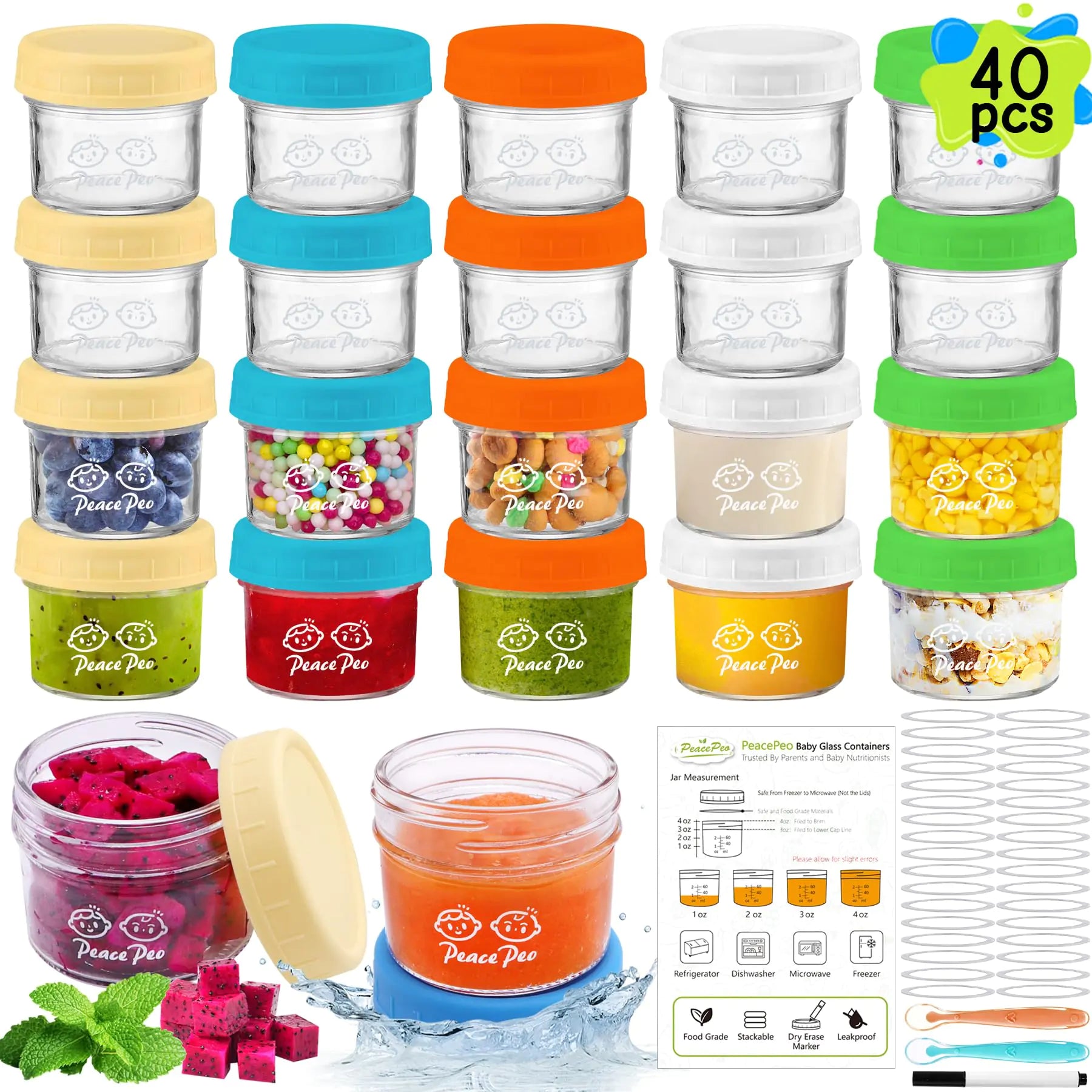 PeacePeo 40 Pcs Baby Food Containers 4 OZGlass Baby Food Jars Leak-Proof Baby Food Storage Containers with Lids Reusable Baby Storage Jars Dishwasher Safe for Infant & Baby Food